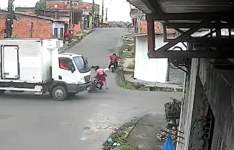 MANAUS (AM) – Um grave acidente foi registrado nesta sexta-feira (21), na rua Iraque, no bairro Grande Vitória, Zona Leste de Manaus. Um casal numa motocicleta foi violentamente atropelado por um caminhão-baú.