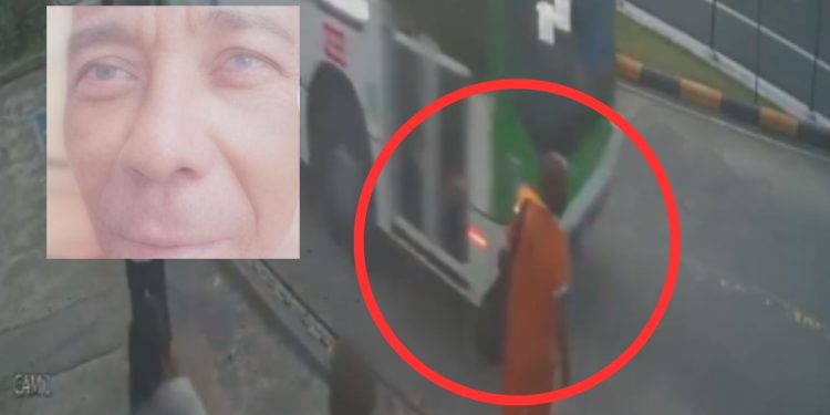 As imagens mostram o trabalhador, Antônio do Nascimento, distraído enquanto atravessava a via interna do terminal, sendo atingido pela roda do veículo durante uma manobra.
