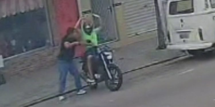MANAUS – Uma câmera de segurança gravou o momento em que o pistoleiro Alexandre Rodrigues de Sena, 29, foi preso momentos antes de matar um rival do tráfico na avenida Duque de Caxias, bairro Cachoeirinha, zona sul de Manaus.
