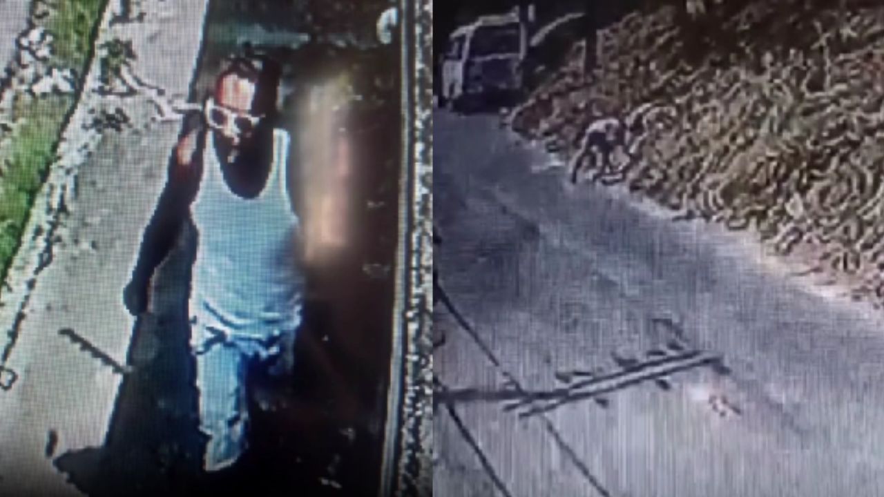 Nas imagens, o criminoso aparece com uma camiseta branca e óculos de sol. Ele vê que ninguém está olhando, coloca fogo na mata e foge.