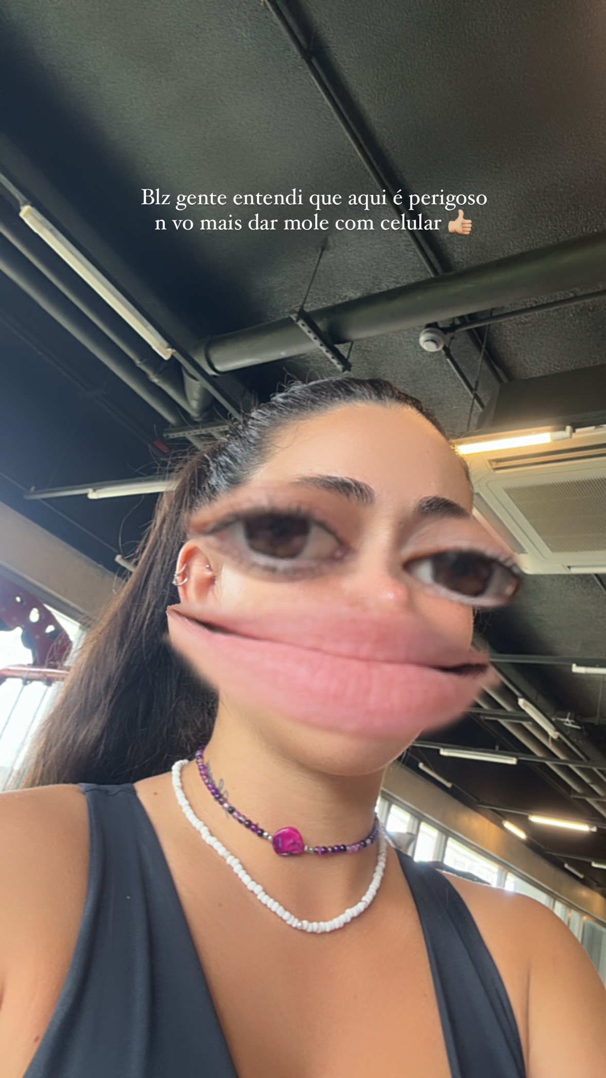 Em seguida, ela publica: “Blz gente entendi que aqui é perigoso n vo mais dar mole com celular”.