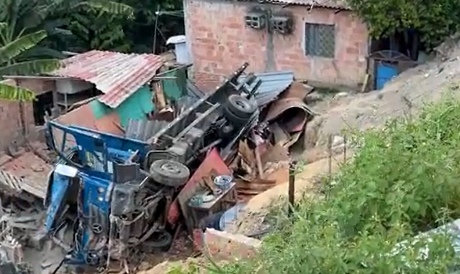 MANAUS (AM) – Por pouco um acidente não acabou em tragédia na manhã desta quinta-feira (28) no bairro Mauzinho, Zona Leste de Manaus. Um caminhão despencou na rua 7 e caiu em cima de uma casa que ficou totalmente destruída.