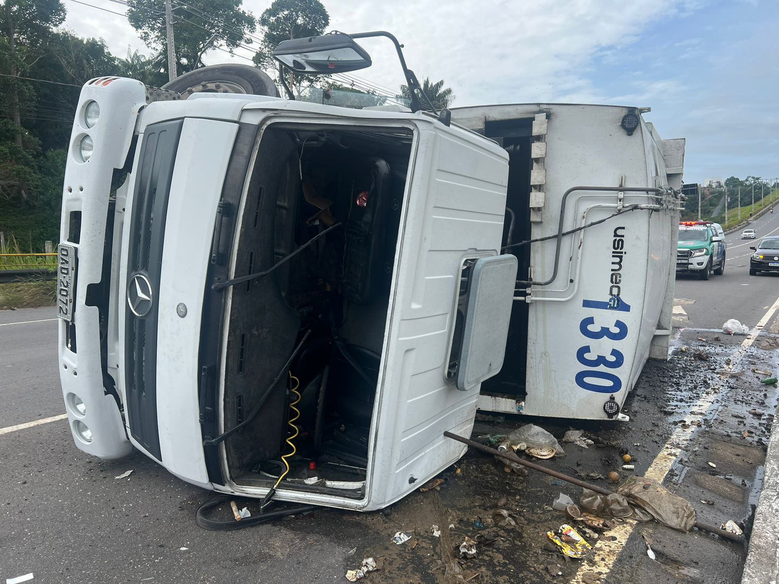 MANAUS (AM) – Um acidente envolvendo um caminhão de coleta de lixo neste sábado (8), causou congestionamento na avenida das Flores em Manaus.