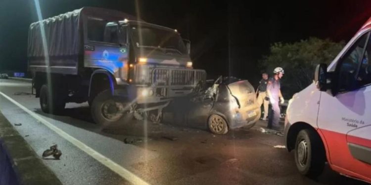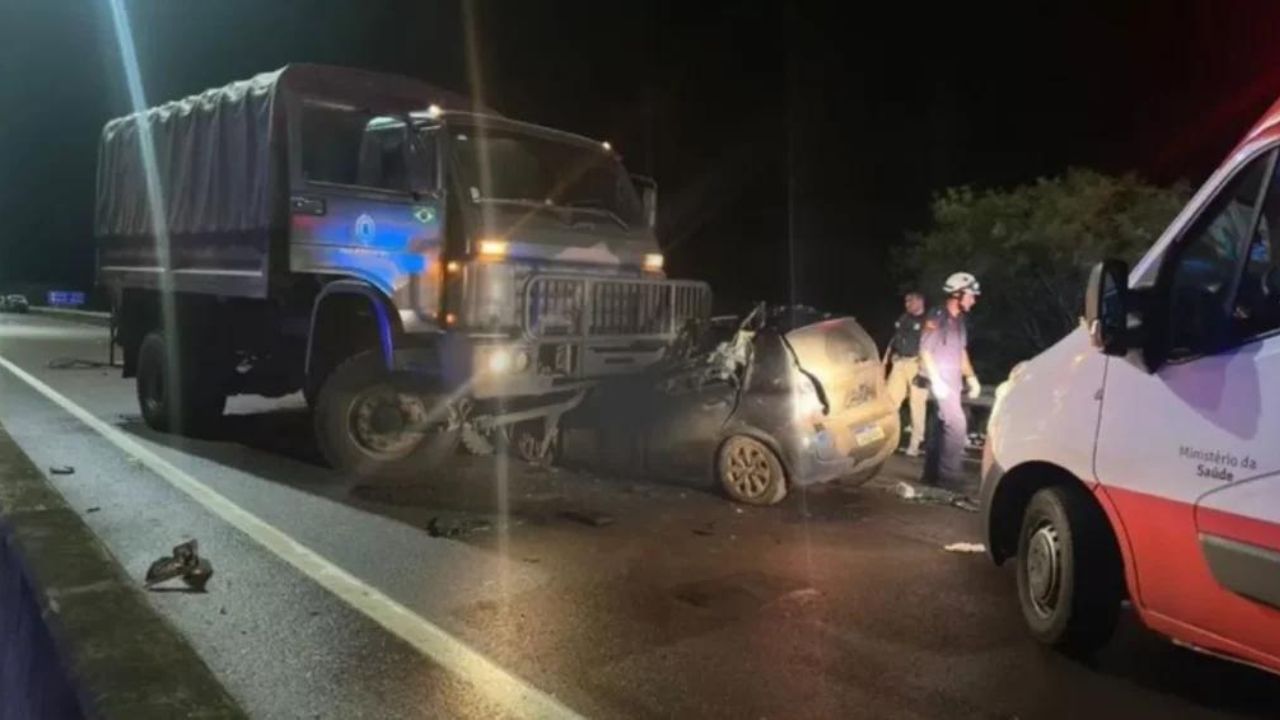 No carro havia cinco pessoas quando o caminhão colidiu. Três morreram no local e duas foram socorridas em estado grave ao hospital São Camilo.