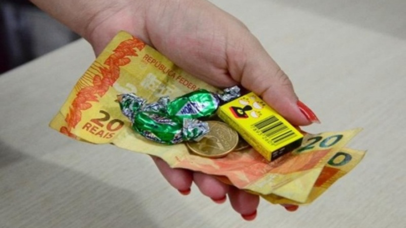 Receber doces como troco quando se compra produtos por R$ 1,99, R$ 10,99 ou R$ 9,99 é algo comum nos comércios, porém, é uma ação proibida pelo Código de Defesa do Consumidor (CDC). Se o estabelecimento dispõe de produtos por valores quebrados, deve ter sempre à disposição moedas suficientes.