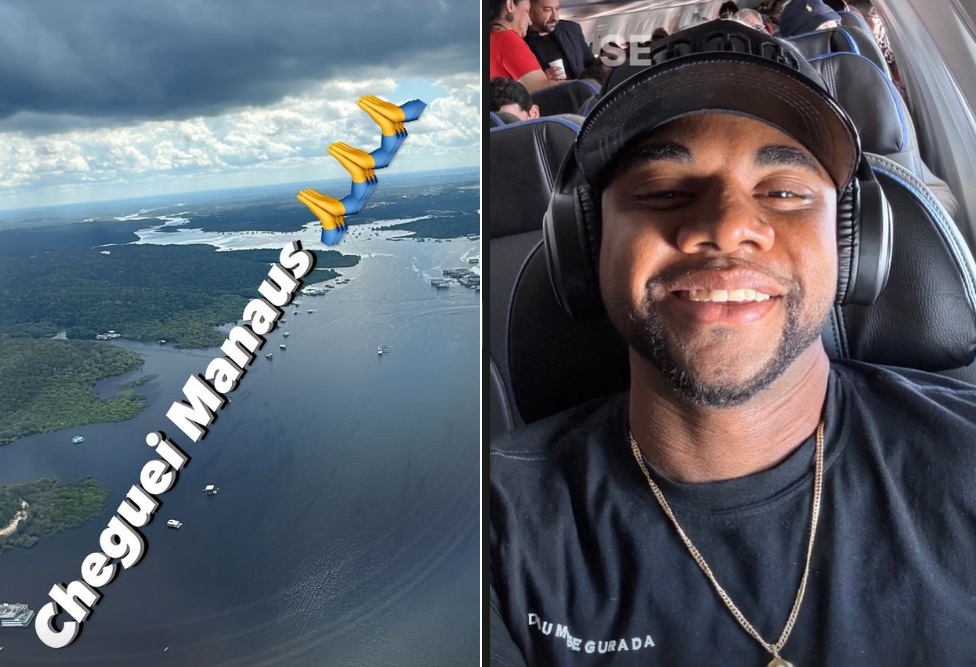 O campeão do BBB desembarcou e postou a chega nos stories. Ontem chegou a dizer que estava com febre, mas depois apareceu se arrumando para vir ao Amazonas.