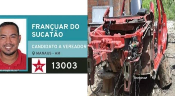 MANAUS-AM| Na tarde da última quinta-feira (29), o candidato a vereador pelo Partido dos Trabalhadores (PT) Francione Freitas da Silva, 33 anos, o “Françuar do Sucatão” foi preso no bairro Cidade de Deus, Zona Norte de Manaus, acusado de receptação de peças e acessórios de um carro roubado.