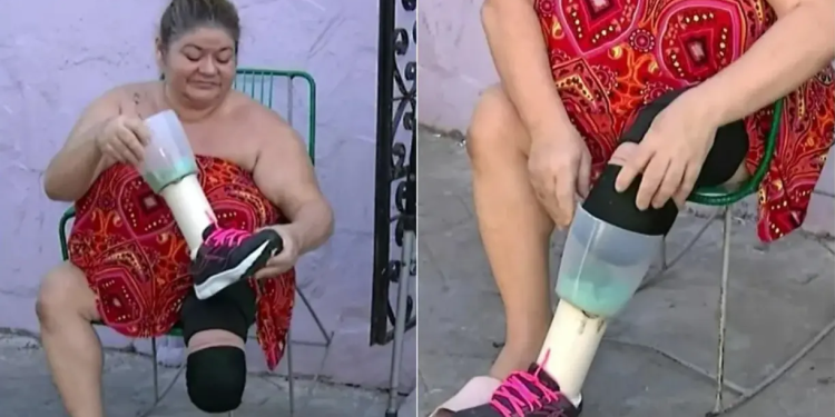 SOBRAL (CE) – Aguardando por mais de 1 ano para receber da prefeitura uma prótese, uma dona de casa de 47 anos improvisou o objeto com um liquidificador e canos PVC.