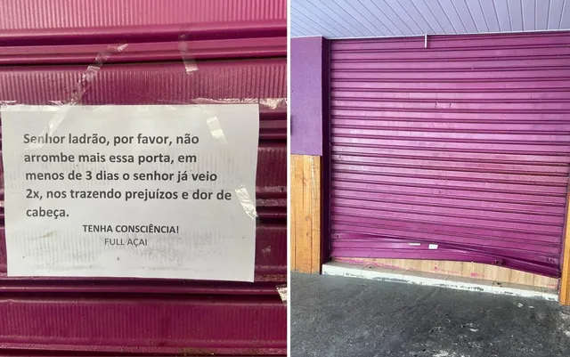 GOIÂNIA (GO) – Cansado de ser assaltado um comerciante resolveu pedir um favor ao ladro que estava roubando constantemente a sua açaiteria: “Senhor ladrão, por favor, não arrombe mais essa porta. Em menos de três dias, o senhor já veio duas vezes, nos trazendo prejuízos e dor de cabeça. Tenha consciência”, escreveu o comerciante no recado.