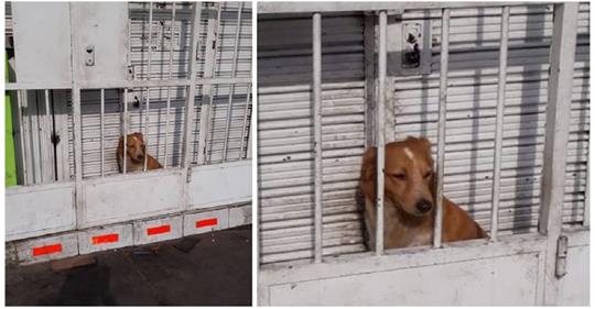 Santa Anita – Peru| Shery Muñoz publicou uma fotografia de um cãozinho trancado num espaço mínimo atrás das grades de uma pizzaria, chamada “Pizza Raúl”, e situada na rua Francisco Bolognesi 6, na cidade de Santa Anita, em Lima, no Peru.
