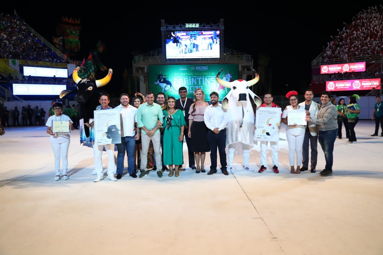 Também participaram da solenidade, na arena do Bumbódromo, a primeira-dama, Taina Lima, o vice-governador, Carlos Almeida; o secretário estadual de Cultura, Marcos Apolo Muniz; o diretor do Departamento de Patrimônio Imaterial do Iphan, Hermano Queiroz, e a superintendente do instituto no Amazonas, Karla Bitar.