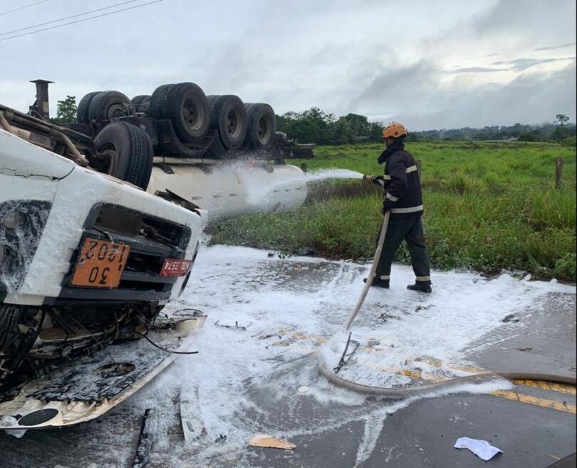 Segundo informações do perfil Amigos do Volante, no Facebook, o veículo fazia o transporte de diesel, quando virou em uma curva na pista molhada, nas proximidades de um posto de combustível, logo após a cidade.