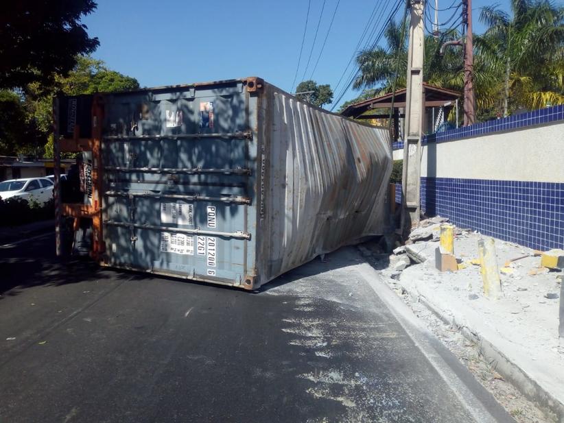 Identificado como Enos da Silva Nascimento, o homem conta que o acidente aconteceu por haver falhas na pista, o que fez com que ele perdesse o controle do veículo, mesmo tentando dirigir devagar. “A carga da carreta é 27 toneladas de ceramica. Essa pista é desnivelada e eu viim conduzindo a carga devagar, mas ao chegar nessa avenida o contêiner tombou”, relatou ele.