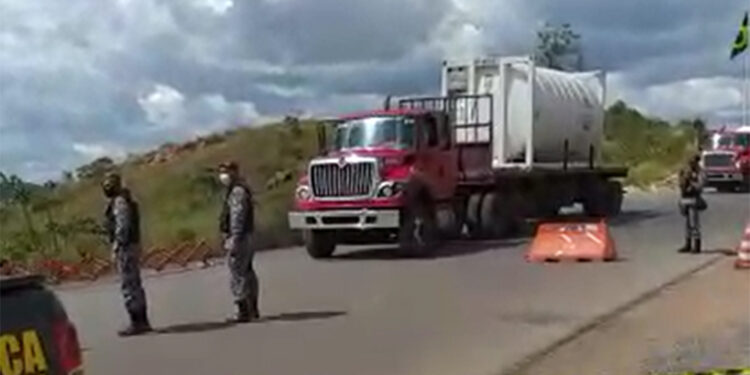 MANAUS – AM | Um vídeo divulgado na internet, nesta segunda-feira (18), exibe um grupo de carretas passando pela fronteira com o Brasil com um carregamento de 300 mil metros cúbicos de oxigênio. A carga é para abastecer unidades de saúde do Amazonas, que enfrentam a falta do insumo por causa do aumento de casos de Covid-19 na região.