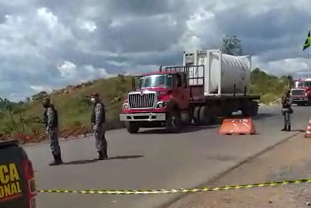 MANAUS – AM | Um vídeo divulgado na internet, nesta segunda-feira (18), exibe um grupo de carretas passando pela fronteira com o Brasil com um carregamento de 300 mil metros cúbicos de oxigênio. A carga é para abastecer unidades de saúde do Amazonas, que enfrentam a falta do insumo por causa do aumento de casos de Covid-19 na região.