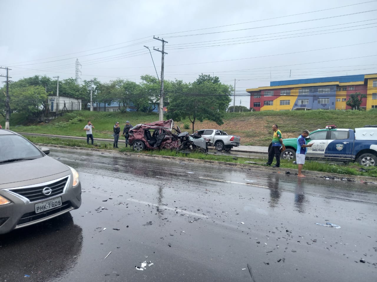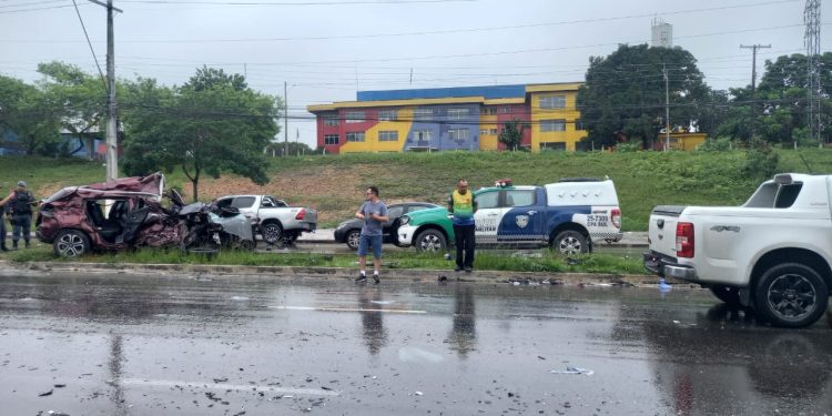 MANAUS (AM) – Um acidente de trânsito envolvendo um caminhão e um veículo de passeio deixou uma mulher e duas crianças feridas neste sábado (11), na avenida Ministro João Gomes de Souza, bairro Distrito Industrial, zona Leste de Manaus.