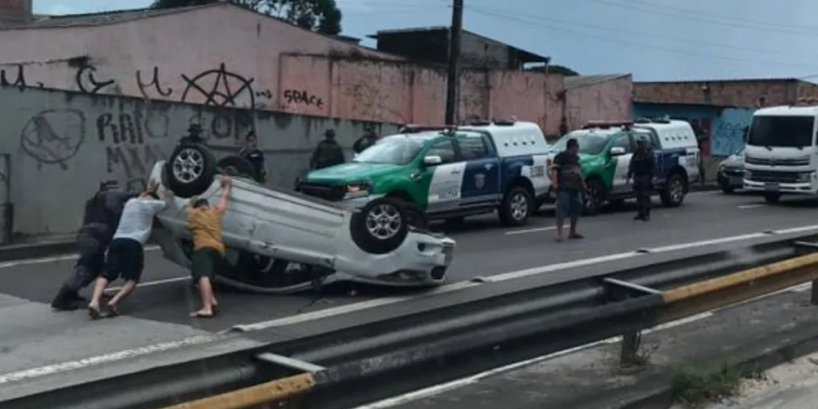 MANAUS (AM) – Um carro capotou na tarde desta terça-feira (28), na avenida das Torres. O acidente teria acontecido por volta das 13h.