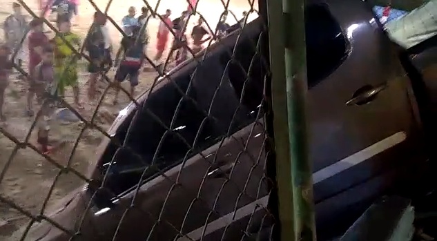 MANAUS – AM | Uma caminhonete ficou pendurada no muro de um campo de futebol após o motorista colidir contra o gradil, na noite deste sábado (25). O acidente aconteceu por volta das 19h na Rua Professor Manoel Belém, situada no conjunto Renato Souza Pinto, bairro Cidade Nova, zona Norte de Manaus.