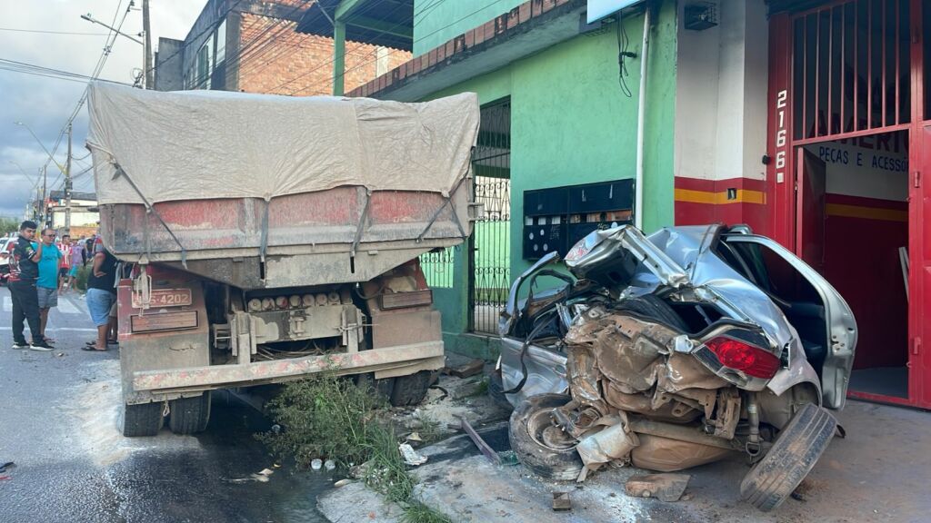 MANAUS (AM) – Por pouco um grave acidente não terminou em morte na tarde desta quarta-feira (5) na avenida Camapuã, no bairro Cidade Nova, Zona Norte de Manaus. Um carro ficou completamente destruído após ser atingido por uma caçamba desgovernada.