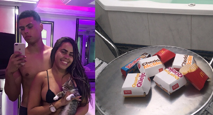 A celebração, que foi realizada em um motel, estava recheada de hambúrgueres, biscoitos e muita batata frita. Mas um detalhe chamou a atenção nas fotos: o casal levou seu gato de estimação para o local. Segundo a jovem, era para ele “não dormir sozinho”.