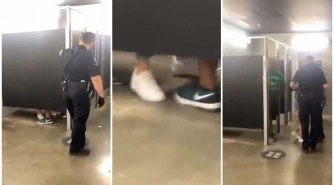 O casal estava dentro de uma cabine reservada no banheiro masculino do estádio. Devido a cabine ter a parte inferior aberta, era bem fácil perceber os pombinhos no local. Após muitas pessoas começarem a entrar dentro do banheiro, a polícia foi até o lugar e bateu na porta pedindo que os dois saíssem.