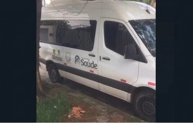 As imagens mostram a ambulância balançando. No momento da gravação, a van está em funcionamento, mas sem motorista na cabine.