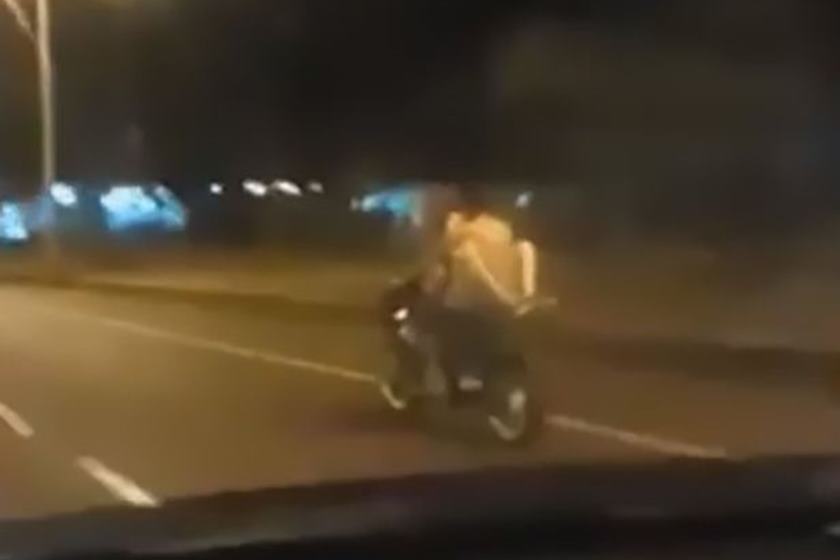 As imagens mostram a mulher com a saia levantada no colo do piloto da moto e com as pernas entrelaçadas nas costas do rapaz. O jovem, por sua vez, também estava pelado, mas, aparentemente, prestando atenção na condução.