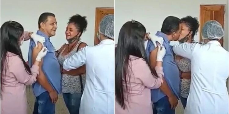 AMAPÁ | Um casal do município de Santana, no Amapá, protagonizou uma cena romântica e bastante esperada por diversos brasileiros, nessa sexta-feira (9). Depois de serem vacinados no mesmo horário e local, Ruti e Roberto Prata decidiram selar o momento com um beijo apaixonado.