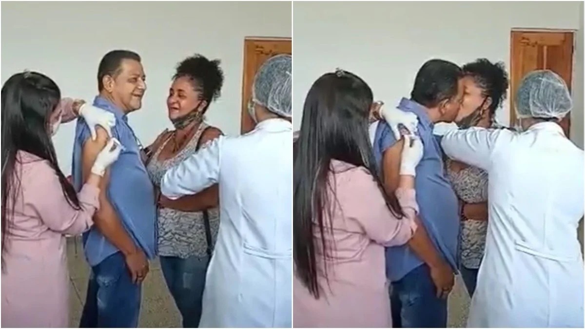 As enfermeiras responsáveis por aplicar os imunizantes no casal parecem se divertir bastante com a cena. Ao G1, eles contaram que estão juntos há 30 anos. Para Roberto, o gesto representa toda a sua gratidão para com a esposa, que foi quem cuidou dele quando foi diagnosticado com a Covid-19.