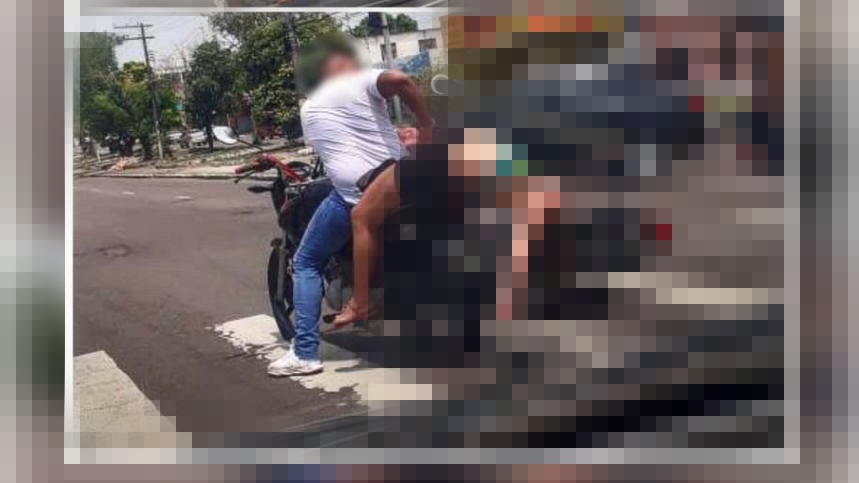 Pelas imagens compartilhadas através das redes sociais, a passageira acabou perdendo o equilíbrio e por pouco não caiu da moto, graças ao motociclista que a segurou.