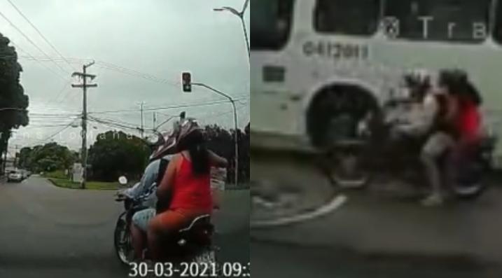 MANAUS–AM| Imagens que circulam nas redes sociais, mostram um casal escapando de um grave acidente, após desviarem de o ônibus de transporte público em alta velocidade. O caso ocorreu nesta terça-feira (20), na Avenida Max Teixeira, Cidade Nova, Zona Norte de Manaus.