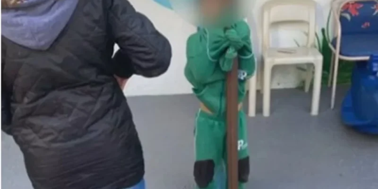 O vídeo que mais chocou foi de um menino amarrado a uma pilastra, foi usado a própria blusa da criança como corda.