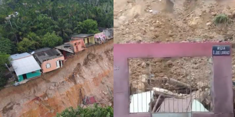 MANICORÉ (AM) – A situação dos moradores de Manicoré (a 332 quilômetros de Manaus), interior do Amazonas, é complicada. Após forte chuva neste sábado (16), um deslizamento de terra acabou com boa parte da rua Dom José Lourenço. Seis casas foram destruídas completamente. Não há informação de vítimas fatais.