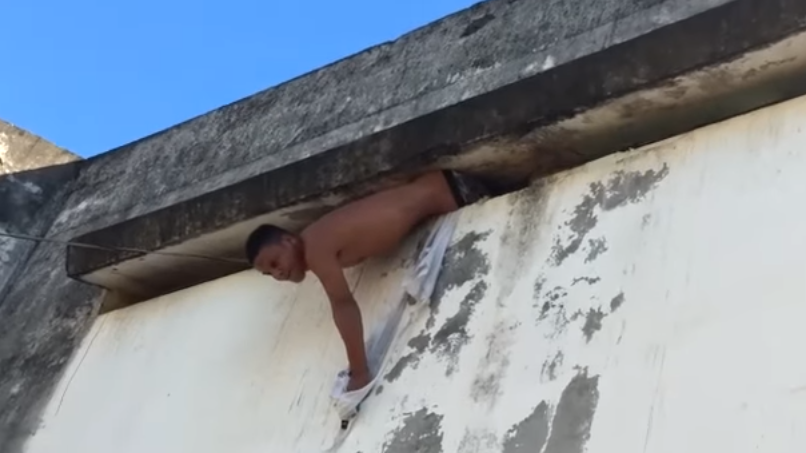 Salvador - Parece até cena do filme “missão impossível”, entretanto é apenas um presidiário trabalhão acabou ficando entalado em uma abertura...