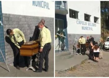 Nesta sexta-feira (28), uma família fez o velório de um ente querido, na calçada da Capela Municipal de Manhuaçu, na...