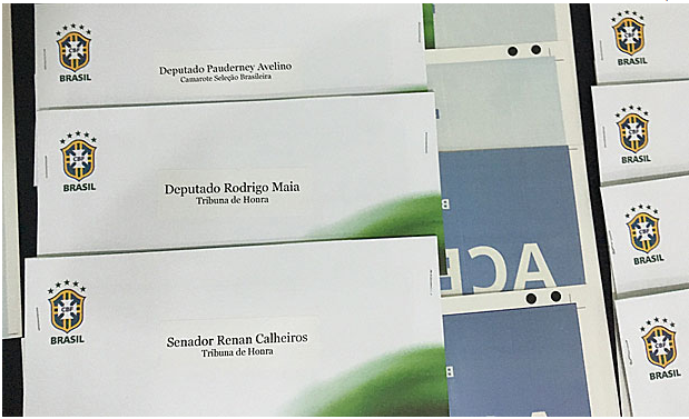 Alguns políticos identificados com o novo governo foram convidados para a tribuna de honra. Entre eles estão o presidente do Senado, Renan Calheiros (PMDB-AL), e o presidente da Câmara, Rodrigo Maia (DEM-RJ), que desistiu de assistir ao jogo.
