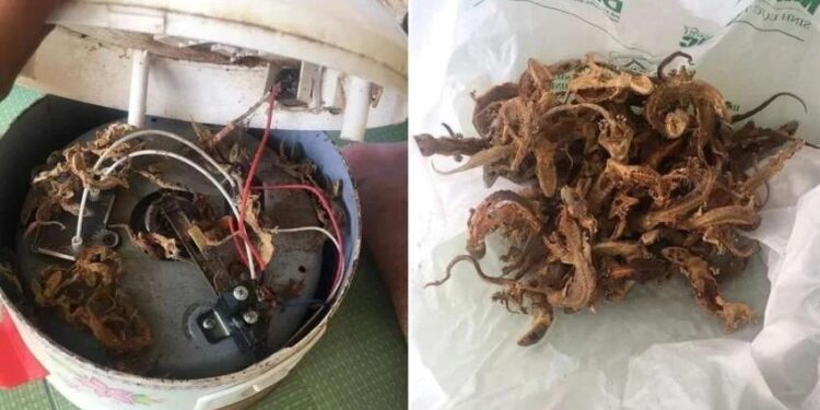 BRASIL | Imagens de lagartixas mortas após serem “torradas” em uma panela elétrica de arroz viralizaram nas redes sociais nessa segunda-feira (20). As pessoas compartilharam a foto mais de 70 mil vezes. Elas estão intrigadas e espantadas buscando por uma explicação.
