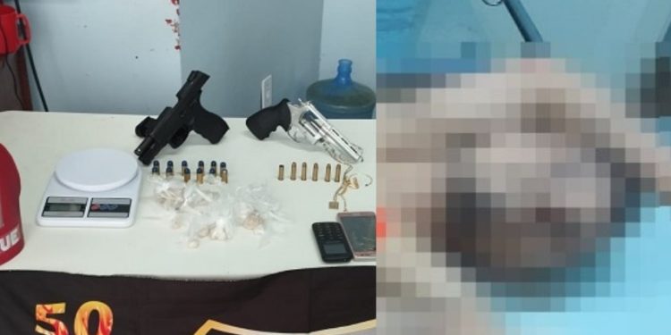 A mulher que seria comparsa dele não resistiu à abordagem e acabou presa. Com eles a polícia encontrou uma pistola PT 845.45 com 12 munições, 20 trouxinhas de oxi e mais uma pedra de droga.