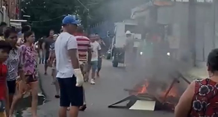 Na manhã desta segunda-feira (12), uma equipe foi até o local tentar realizar um serviço, contudo os moradores se reuniram e começaram um protesto em meio a rua, e para impedir que carros da companhia adentrassem a localidade, eles queimaram objetos.