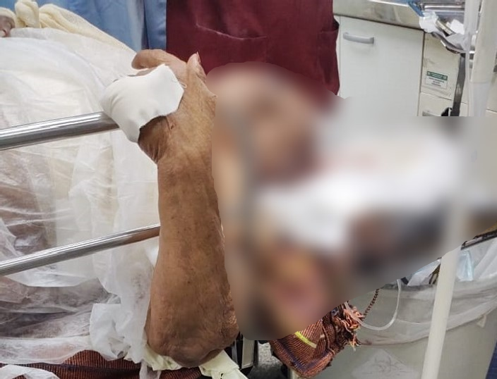 A mulher está entre a vida e a morte e já passou por diversas cirurgias no Hospital e Pronto-Socorro Dr. Platão Araújo, onde está internada em estado grave.