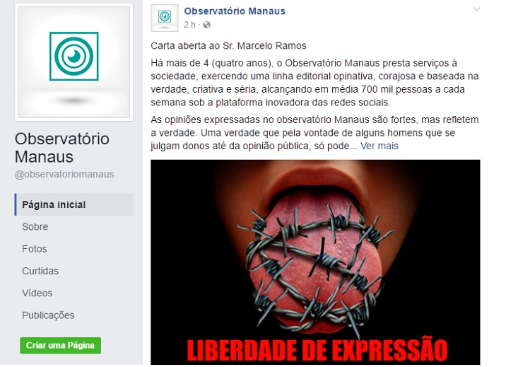 Confio na justiça, na liberdade de imprensa e de expressão. E enquanto o Observatório Manaus existir, a verdade será dita!”.