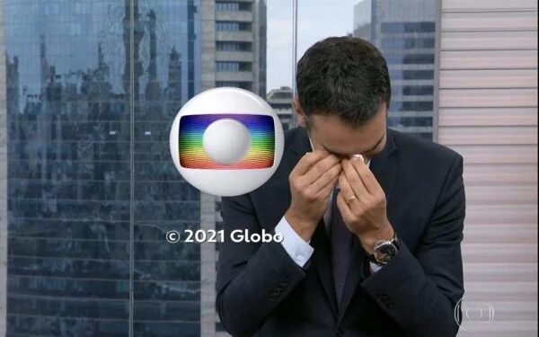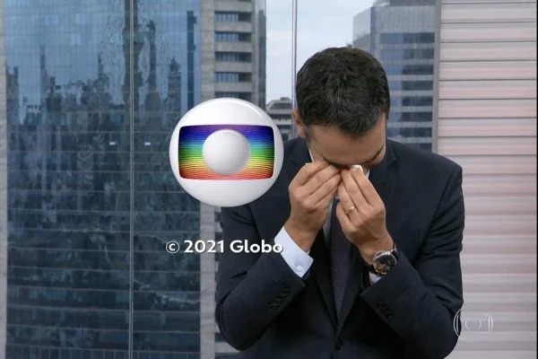 César Tralli Já com os créditos sendo exibidos na tela, Tralli deixou as lágrimas rolarem e usou um pano.