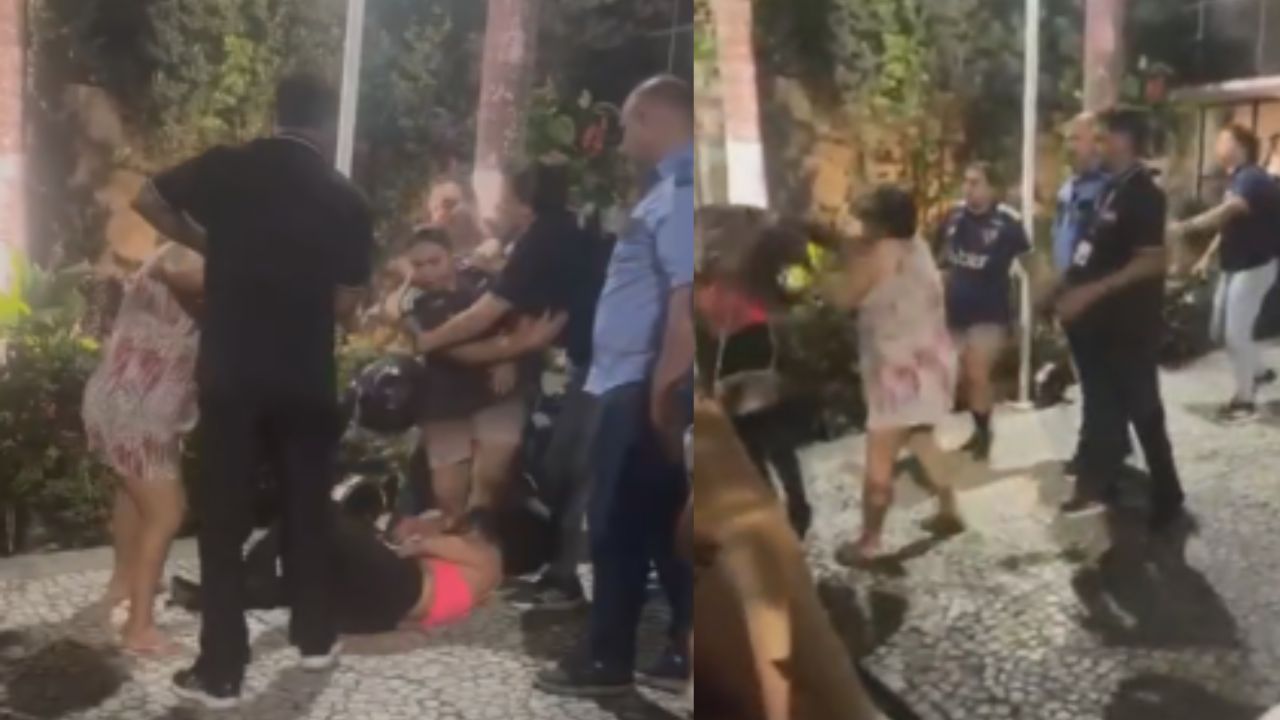 Um vídeo que circula nas redes sociais mostra uma mulher agredindo uma jovem com tapas, socos e puxões de cabelo.