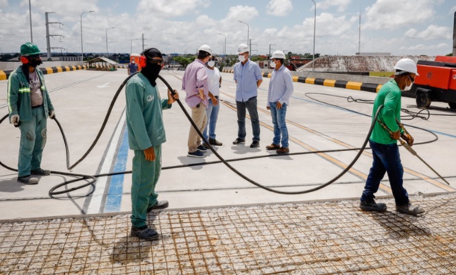 MANAUS–AM| O prefeito David Almeida e o vice-prefeito Marcos Rotta acompanharam a retomada das obras do complexo viário Professora Isabel Victória, na avenida Max Teixeira, em frente à entrada do conjunto Manoa, na zona Norte, na manhã desta segunda-feira, 15/3. A previsão, de acordo com as empresas responsáveis pelo consórcio – J Nasser Engenharia Ltda. e Construtora Soma Ltda. –, é de que o viaduto seja entregue nos próximos 60 dias, porém o prazo dependerá do clima na capital.