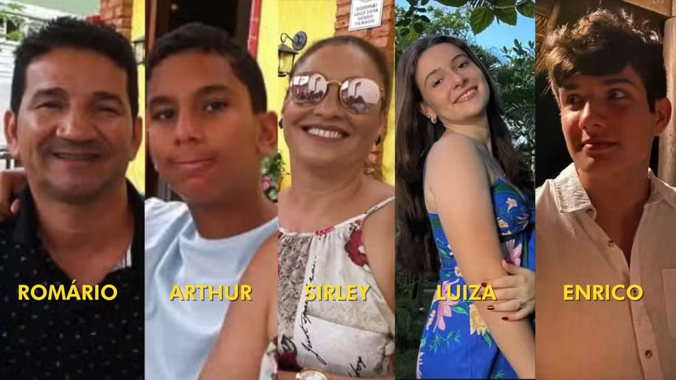 As vítimas foram identificadas como o casal Romário Guimarães França, de 51 anos, que dirigia, e a esposa Luzia Sirley França, de 57 anos, que estava no carona. Atrás, estavam o filho do casal, Arthur, de 18 anos e dois amigos: Luiza Lodi e Enrico Elias Cesquine, de 16 e 18 anos.