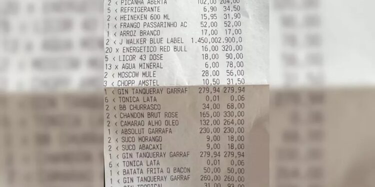 GOIÁS | Um homem foi preso no sábado (16) suspeito de fingir um mal-estar para não pagar a conta de mais de R$ 6 mil do bar onde estava no Setor Marista, em Goiânia. De acordo com a comanda, o homem pediu vários tipos de bebidas alcoólicas, como uísque, cervejas e gin, além de carnes.