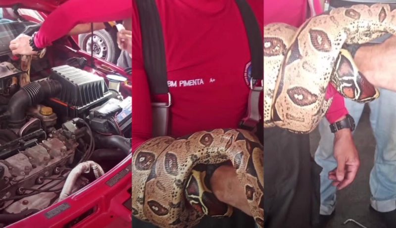 MANAUS-AM| Nesta terça-feira (31), o motorista de um carro foi surpreendido por uma cobra do tipo jiboia dentro do motor de seu veículo. O homem precisou acionar o Corpo de Bombeiros para retirar o animal. O caso aconteceu no bairro Praça 14, zona Sul de Manaus.