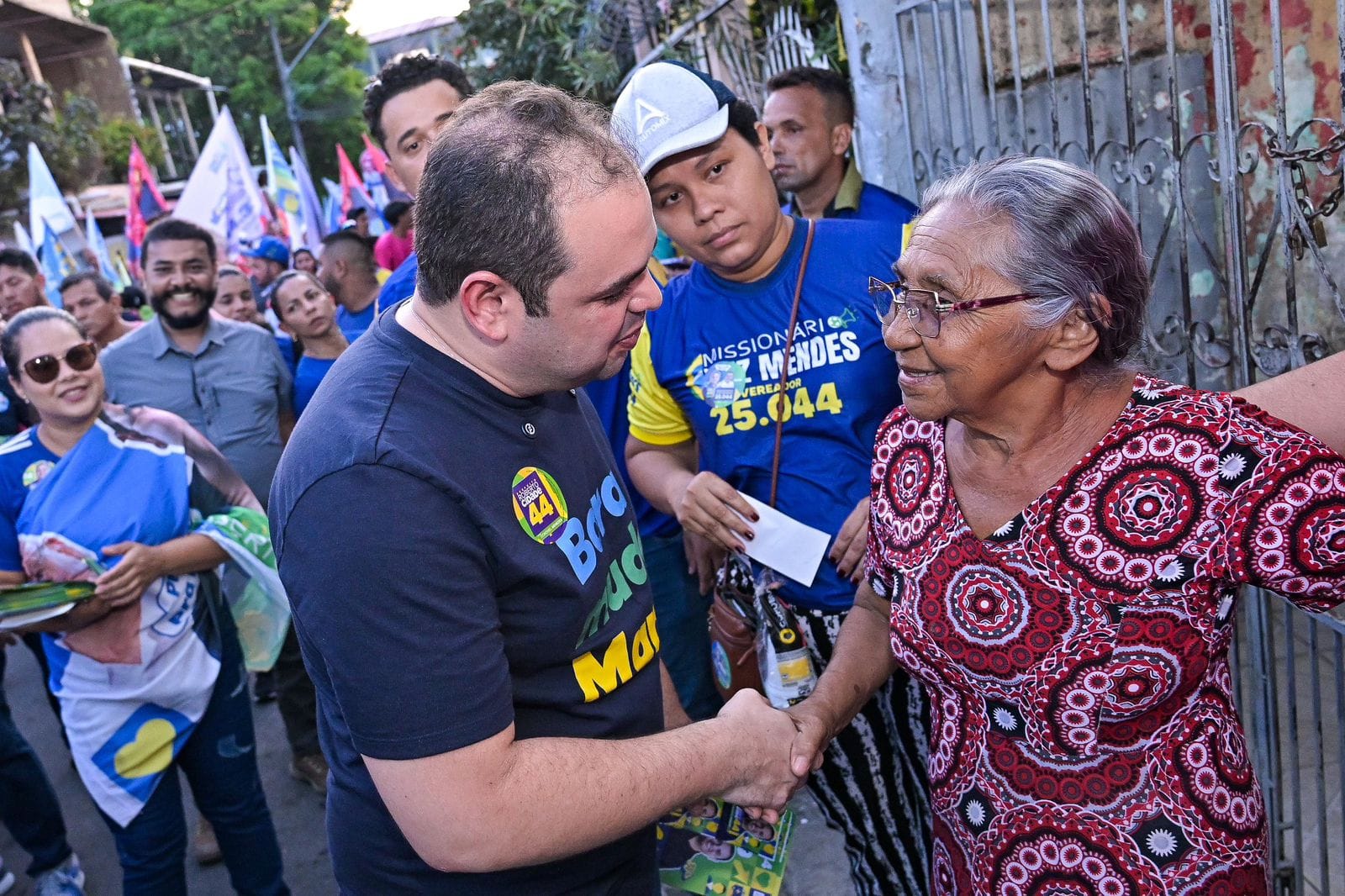 Durante caminhada no Alvorada, Cidade falou com moradores sobre seus projetos. Ele esteve acompanhado dos deputados estaduais Felipe Souza (PRD), João Luiz (Republicanos) e Mário César Filho (União). Ouviu elogios pela sua atuação parlamentar e recebeu sugestões para Manaus quando for eleito prefeito.