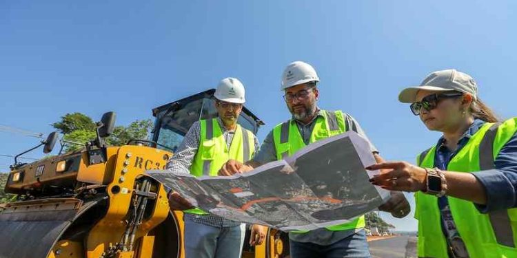 MANAUS (AM) – O governador Wilson Lima vistoriou, nesta sexta-feira (28/07), a etapa final dos trabalhos no Complexo Viário Anel Sul, que já alcança 96% de execução. A duplicação da estrada do Tarumã, na zona oeste de Manaus, contempla 8,7 quilômetros da via, dos quais 8,1 quilômetros já estão totalmente pavimentados. Resta um trecho de 600 metros, nas proximidades do Sistema de Vigilância da Amazônia (Sivam), que começou a receber a aplicação da primeira capa asfáltica durante a vistoria.