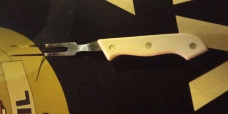 Segundo a Polícia Civil, um dos dentes do garfo chegou a entortar com o golpe praticado contra a vítima.